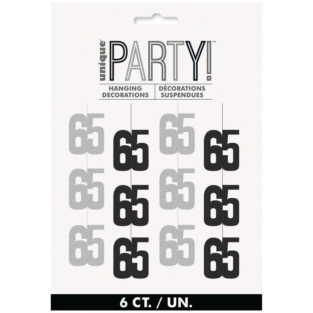 65 Ans Noir 6 Décorations Suspendues en Carton Brillant 60po
