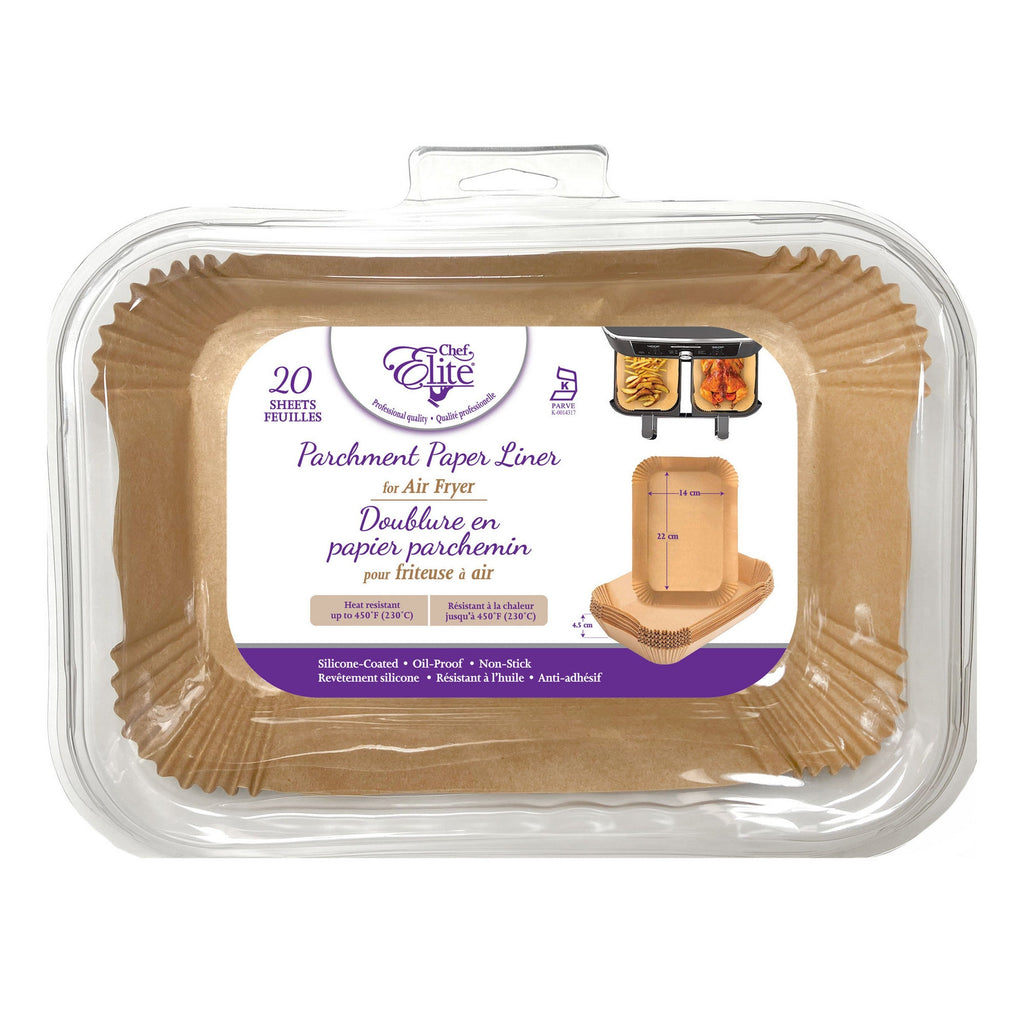 Chef Elite 20 Doublures Rectangulaires en Papier Parchemin pour Friteuse à Air - Silicone Naturel 5.5x8.6x1.8po