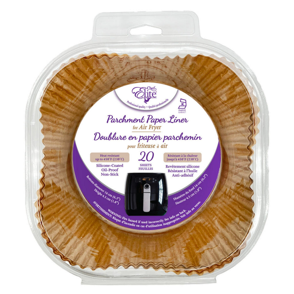 Chef Elite 20 Doublures Carrées en Papier Parchemin pour Friteuse à Air - Silicone Naturel 1.8x6.3 dia. po
