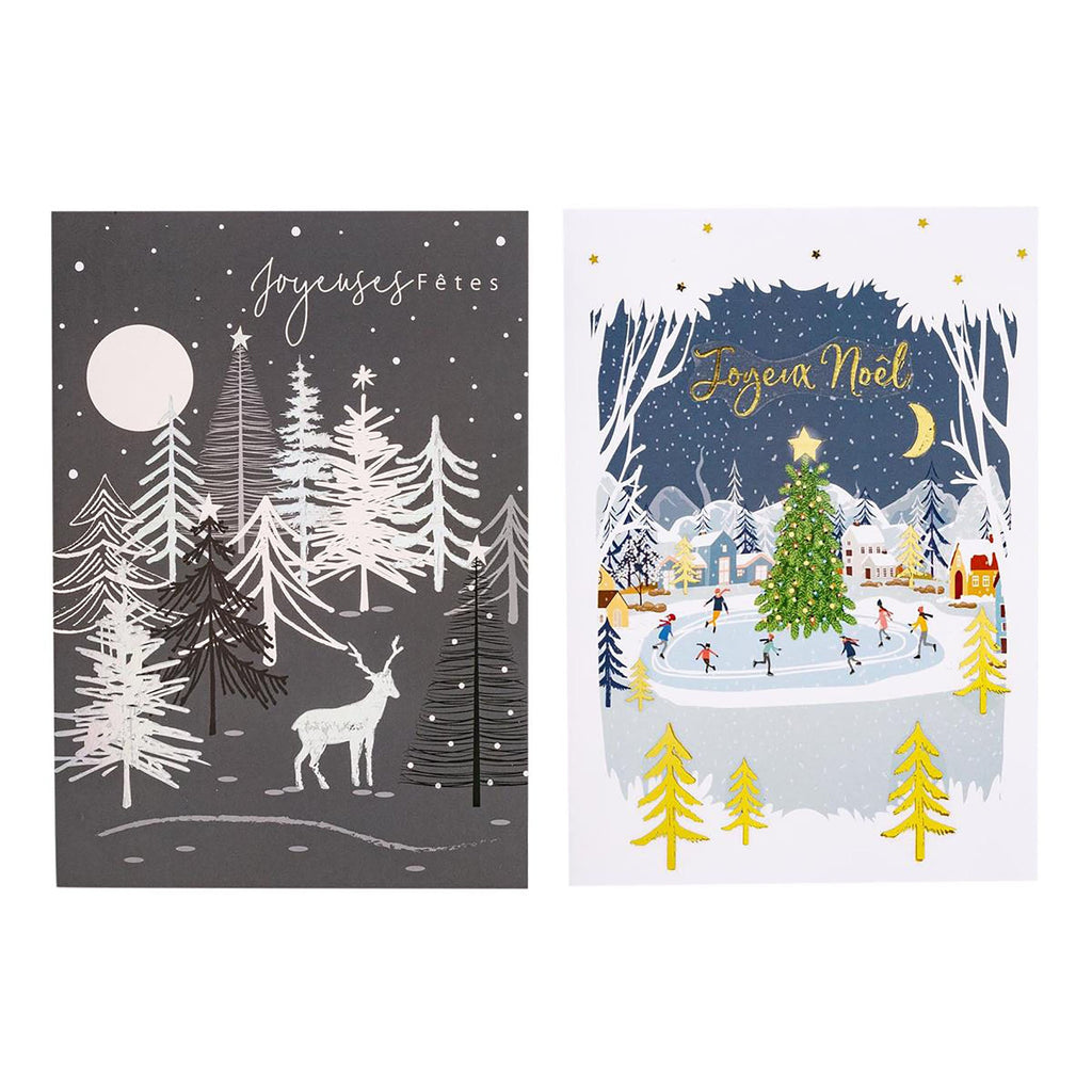 16 Cartes de Noël en Français - Traditionel Brillants et Aluminium VRT