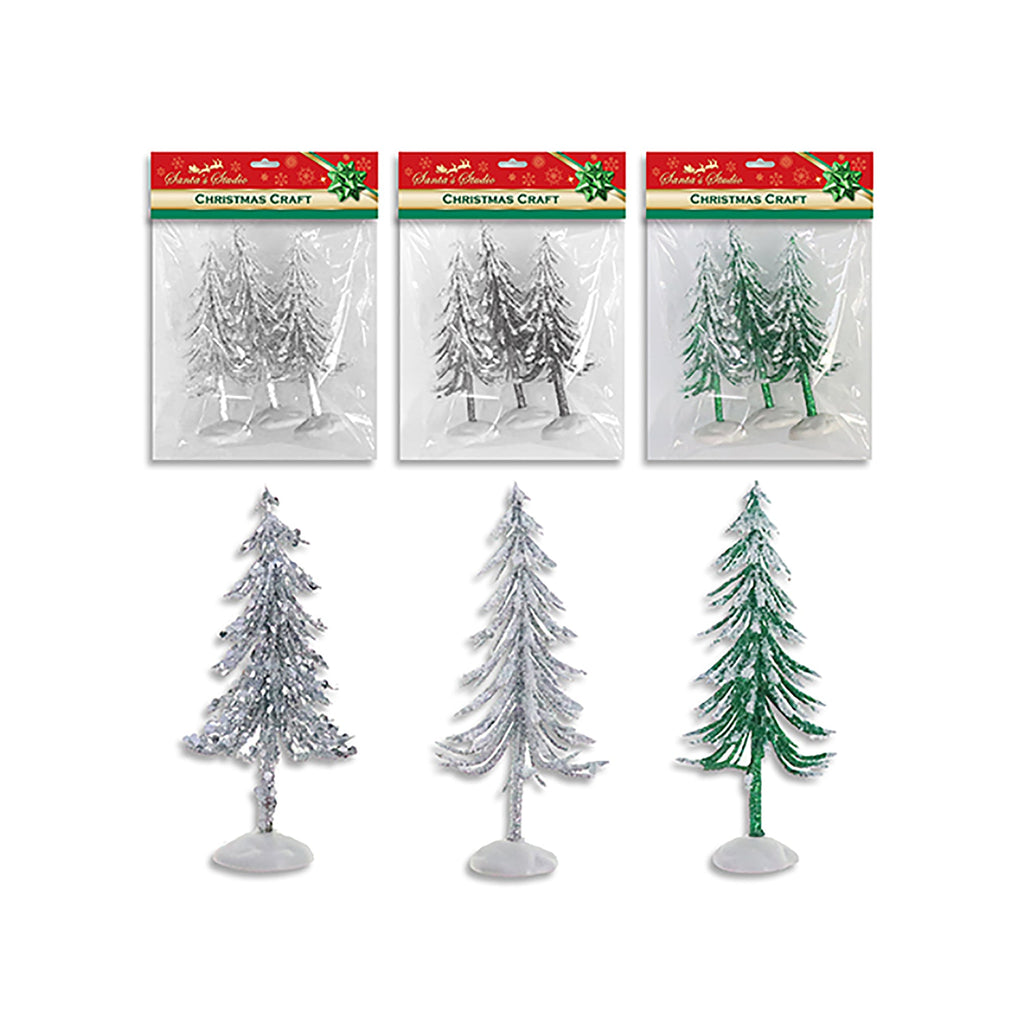 Christmas 3pcs Tree Tabletop Decor Figurine with Plastic Stand 4.45in VRT