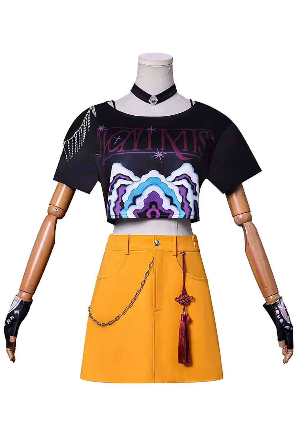 Adoptez le style K-pop audacieux et affirmé de Mira ! Ce costume complet comprend la tenue signature de Mira et les accessoires assortis , conçus pour allier confort et impact. Parfait pour le cosplay, les performances ou les soirées à thème , plongez sous les projecteurs comme un véritable chasseur de démons K-POP !