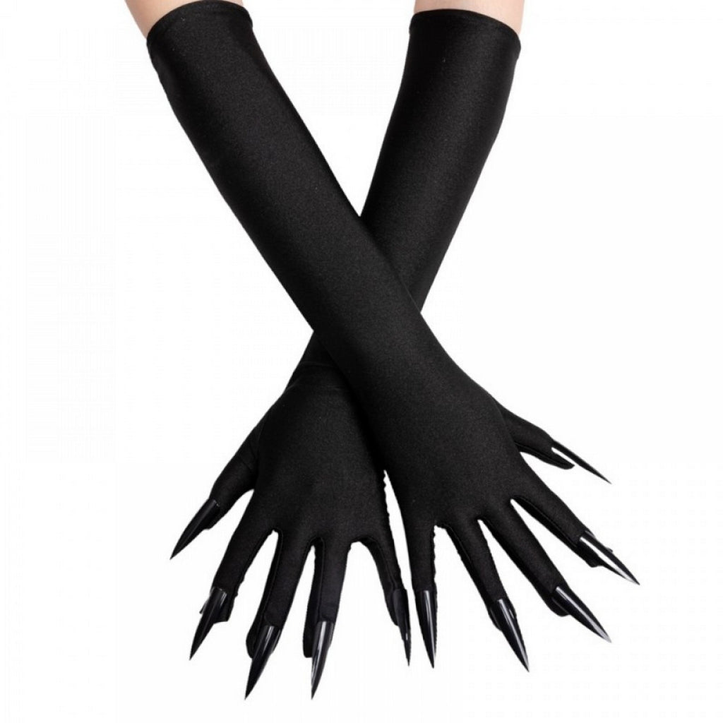 Halloween 1 Paire Gants Noirs avec Ongles - Adulte