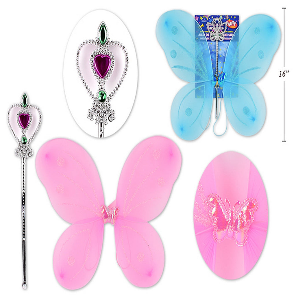 Halloween Ailes de Papillon / Fée en Organdi Brillant avec Baguette 19.25x15.25po