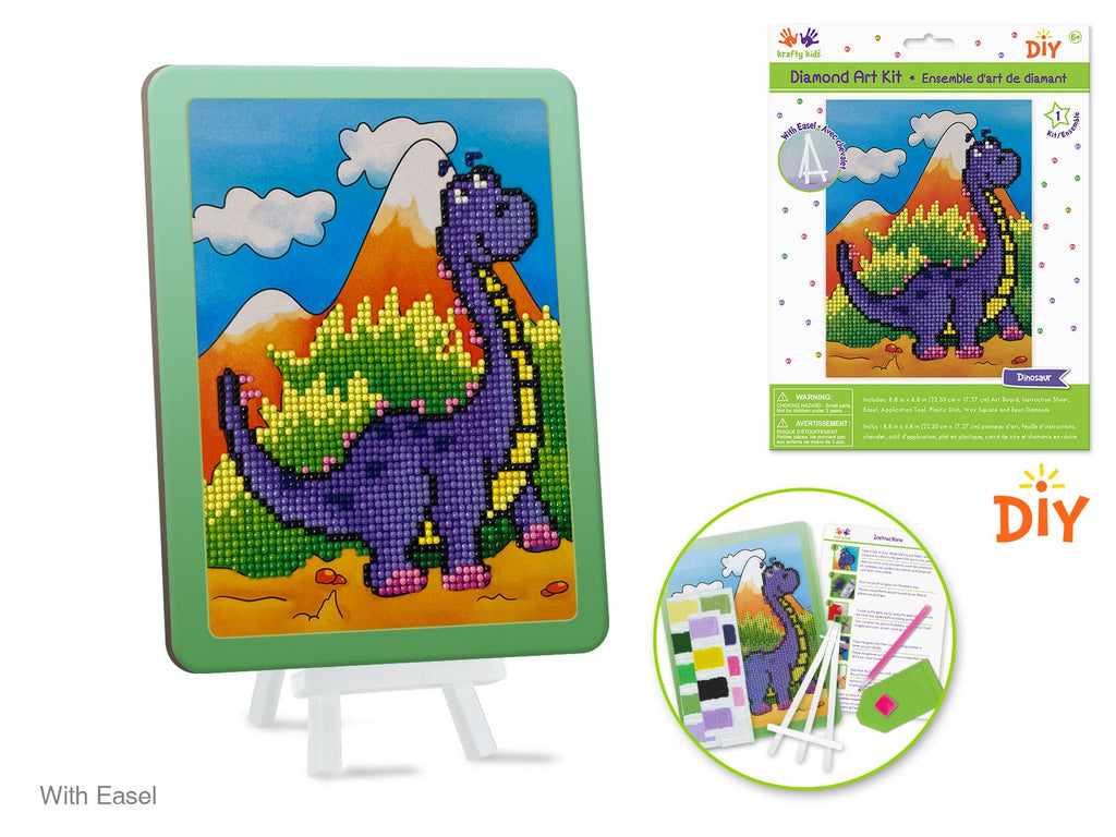 Krafty Kids Ensemble de Peinture à Diamant avec Chevalet Dinosaures 8.8x6.8po