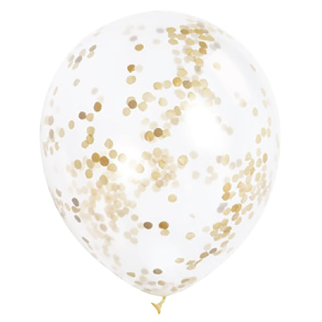 6 Clear Latex Balloons 12in with Gold Tissue Confetti