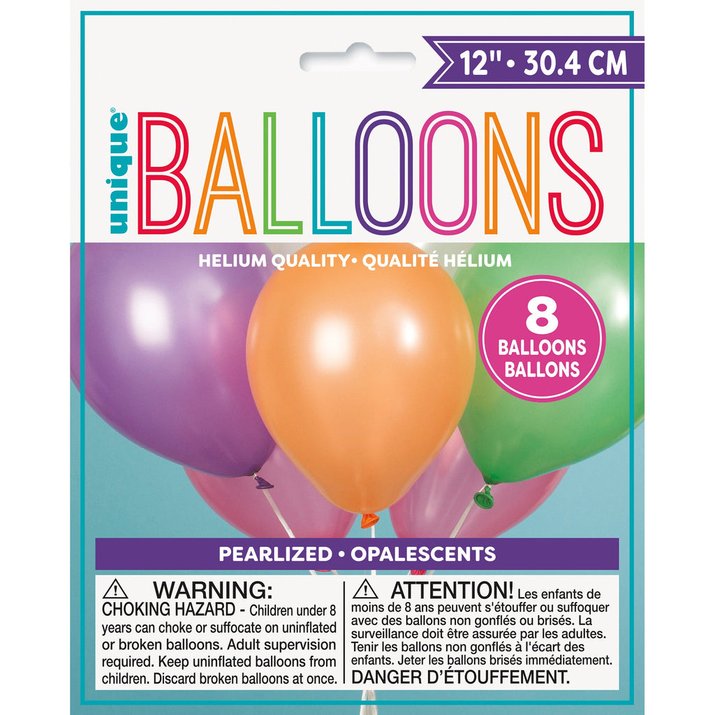 8 Latex Pearlized Balloons 12in Pastel Assorted