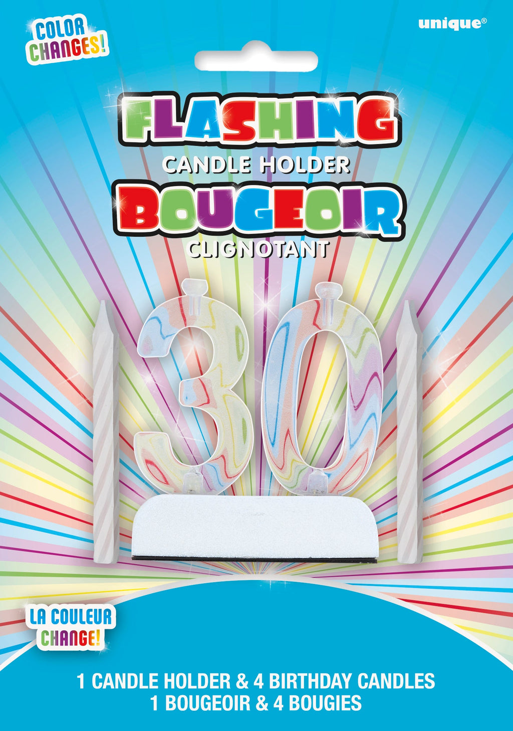 Age 30 Flashing Candle Holder 2.8x2.5in with 4 Candles 2.5in