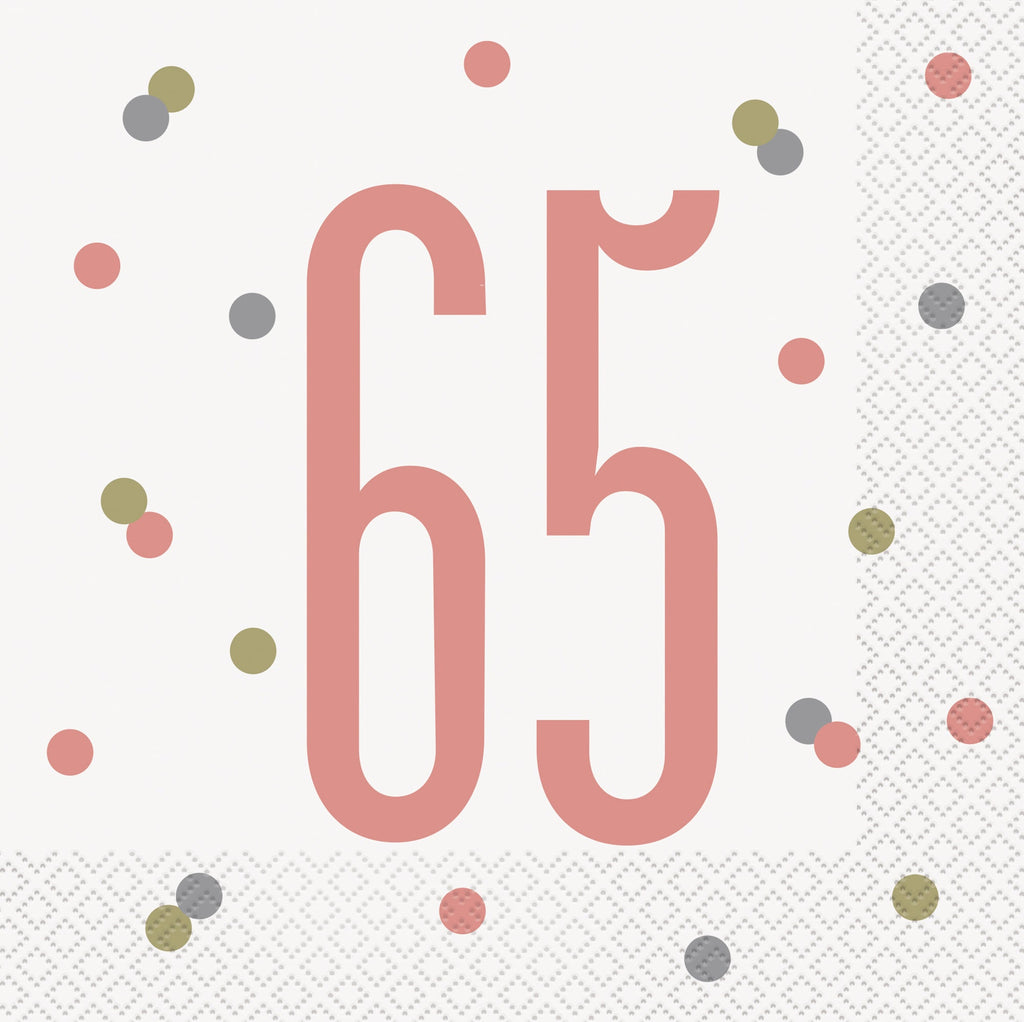 Age 65 Pink 16 Luncheon Napkins 12.75x12.75in