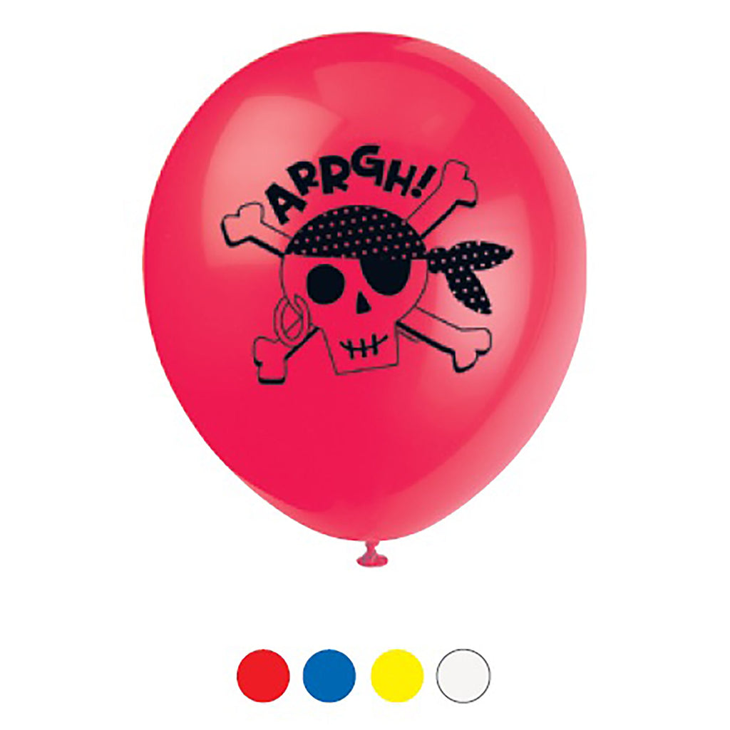 Ahoy Pirate 8 Printed Latex Balloons 12in Assorted Colors