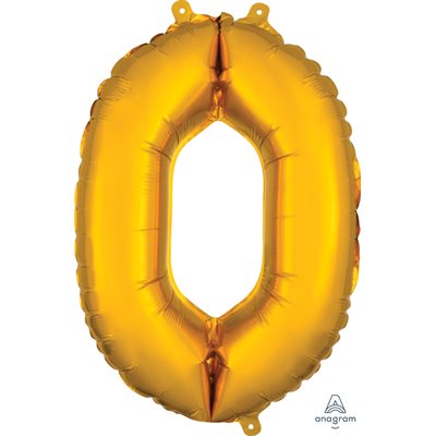 Air-filled Gold Foil Number 0 Balloon 16in