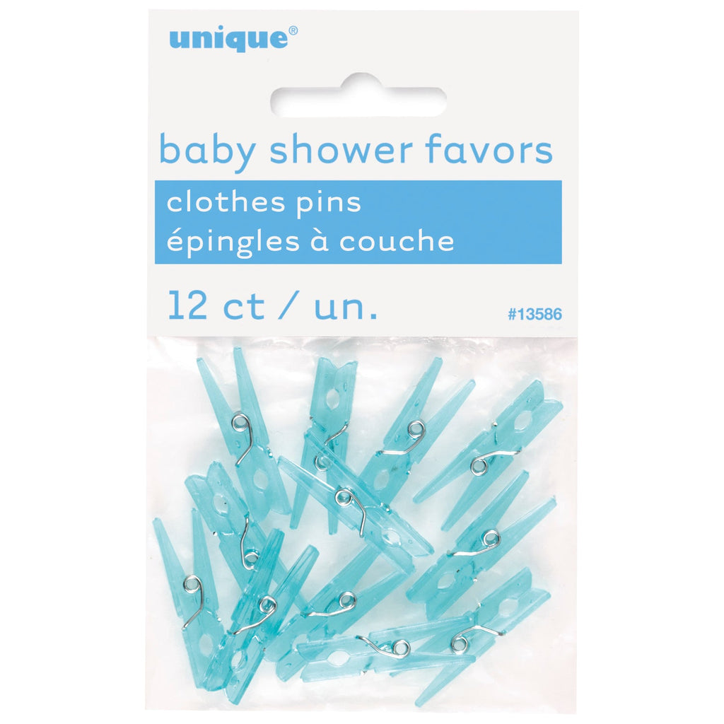 Baby Shower 12 Mini Blue Plastic Clothespins 1.2in
