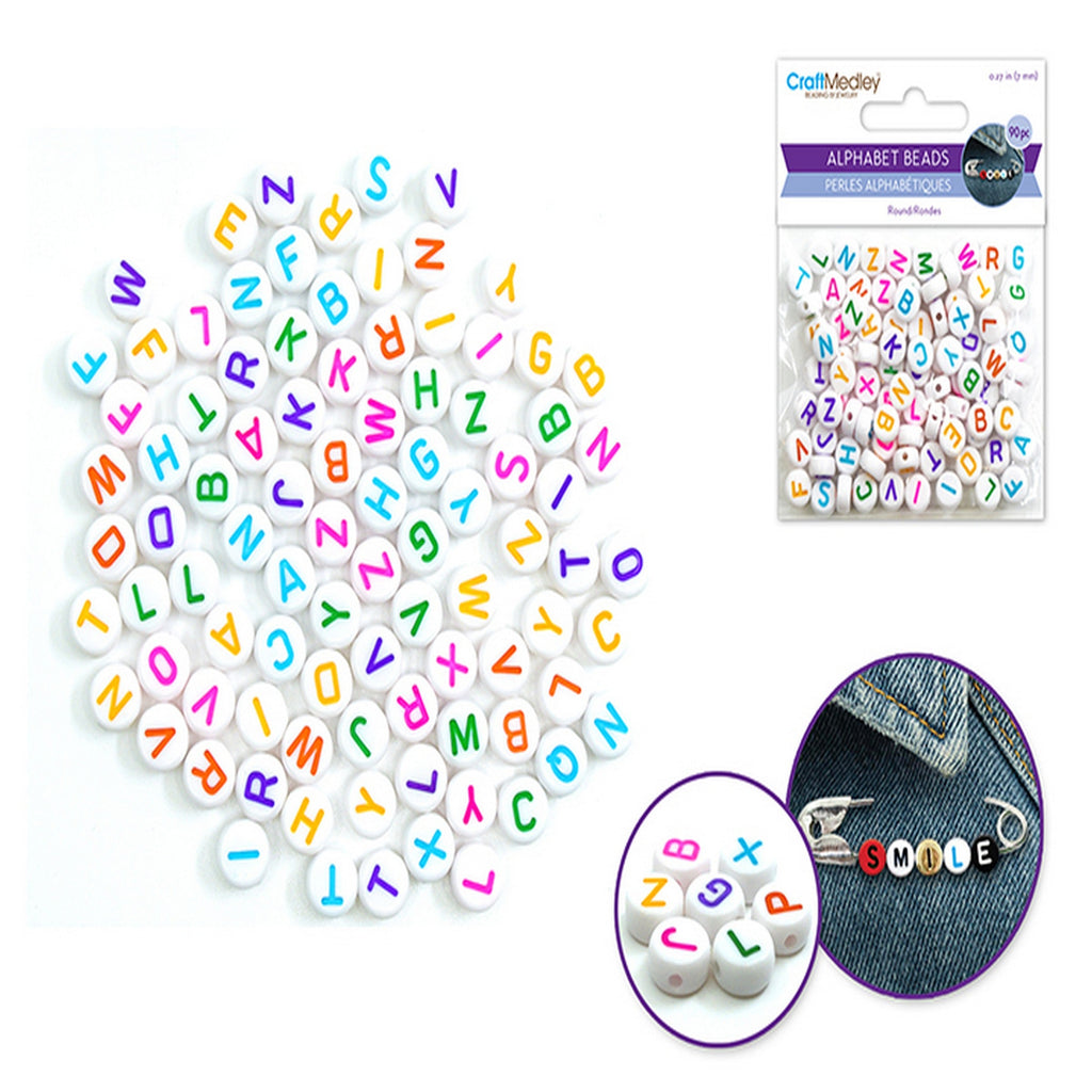 Beading and Jewelry 90 White Round Alphabet Beads with Multi Letters 7mm
