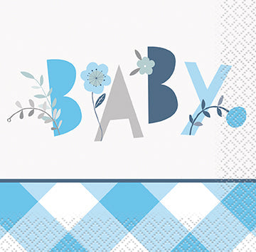 Blue Floral Elephant 16 Beverage Napkins 2 Ply 9.75x9.75in