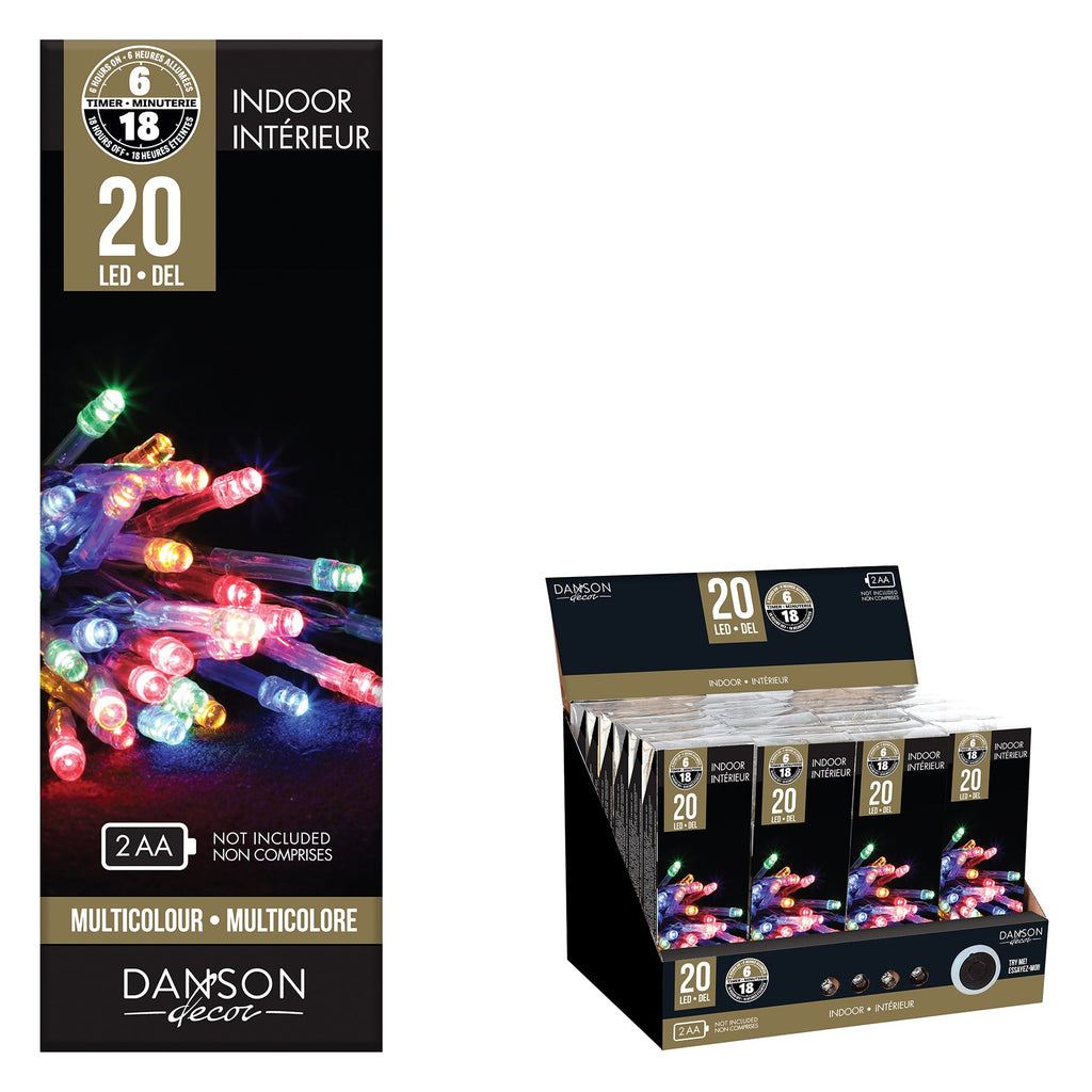 Christmas 20 Led Lights with Timer Multicolor Clear Wire Indoor