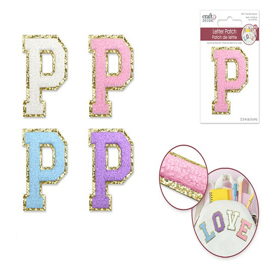 Craft Décor Iron-on 3D Chenille Letter P/Sticker Patch 2.5in VRT