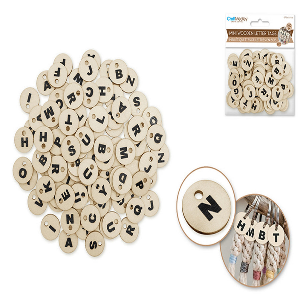 Craft Medley 100 Mini Round Wooden Letter Tags - A to Z 0.7in