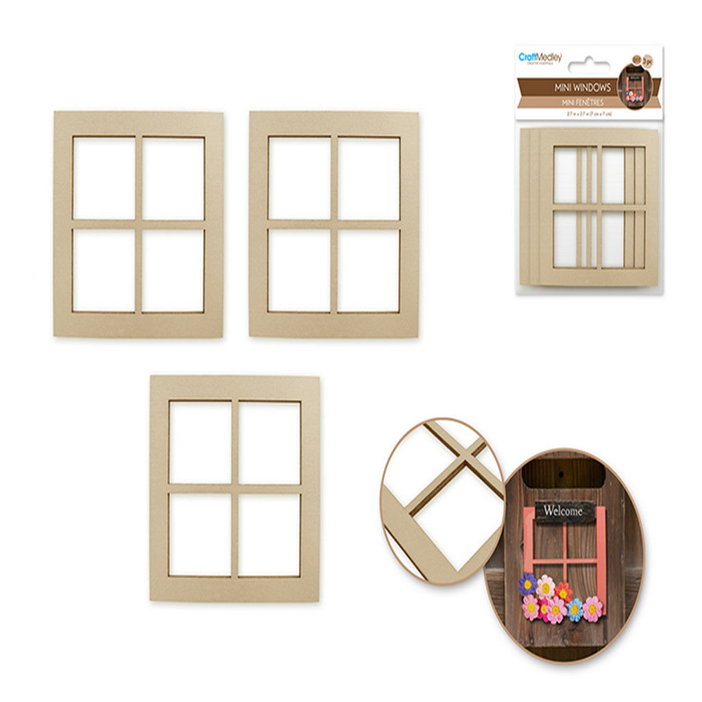 Craft Medley 3 Mini Wooden Windows - Unpainted 2.7x2.7in