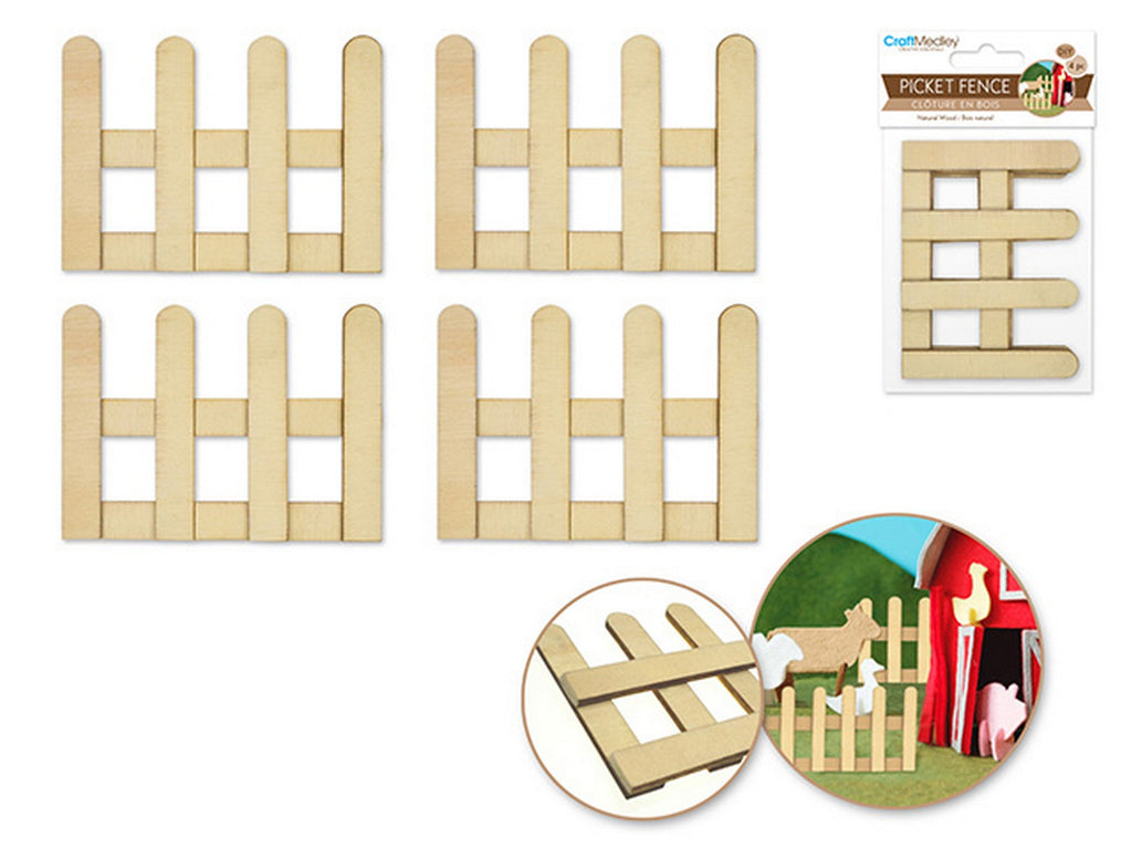 Craft Medley 4pcs Wooden Picket Fence Unpainted 2.36x3.14in