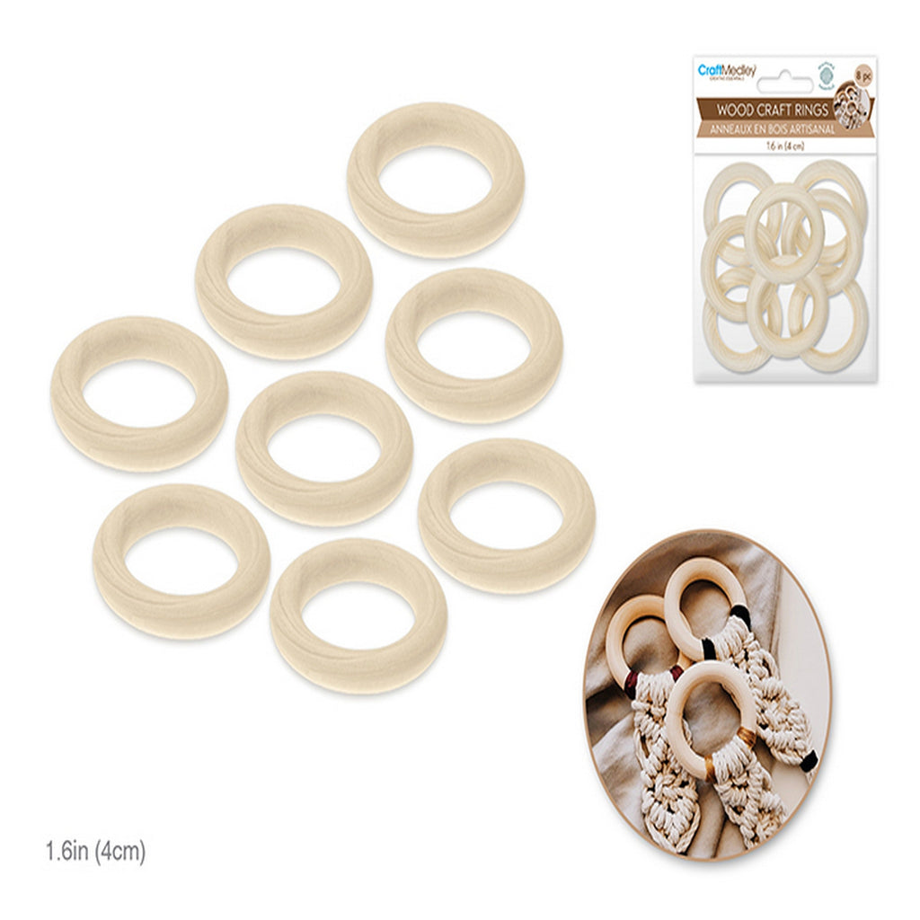 Craft Medley 8 Wooden Rings Natural 1.6in