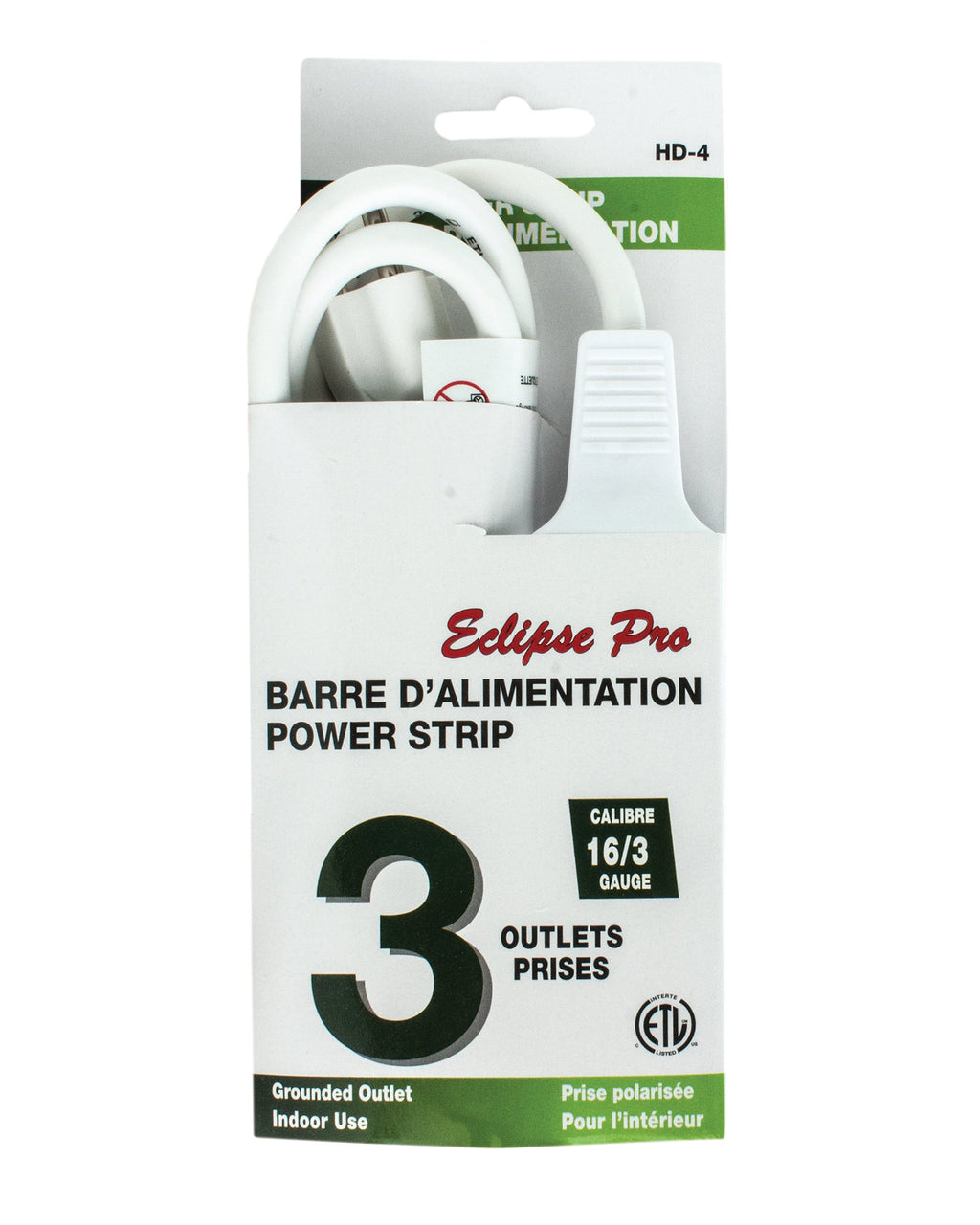 Eclipse Pro White Polarized 3 Outlets Power Strip - Indoor Use 4ft (1.2m)