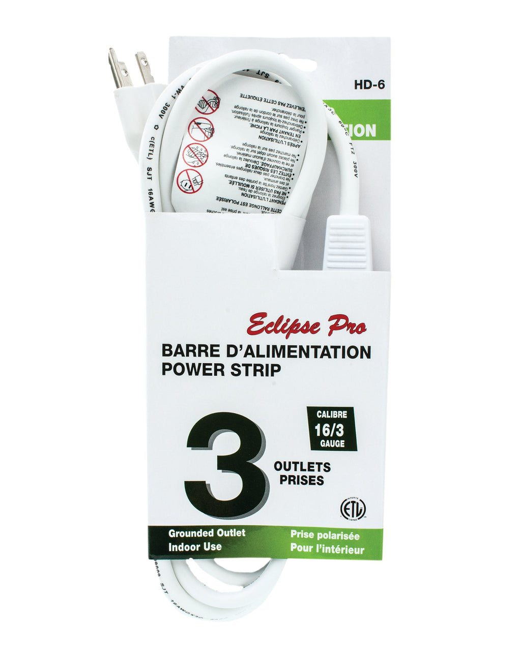 Eclipse Pro White Polarized 3 Outlets Power Strip - Indoor Use 6ft (1.85m)