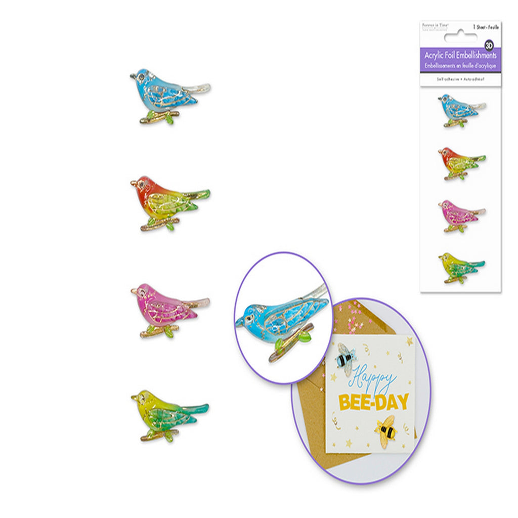 Forever in Time 4 3D Acrylic Foil Self-adhesive Embellishments - Chickadee 1.25x0.75in