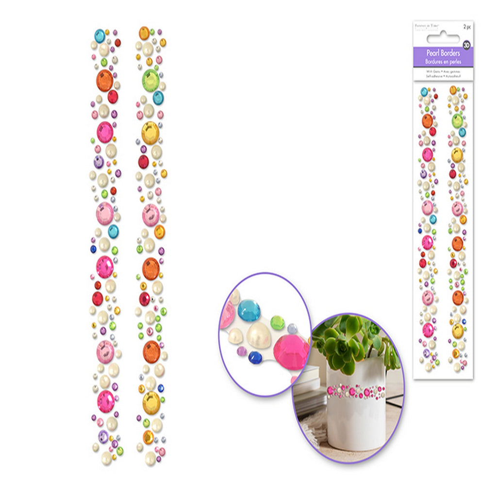 Forever in Time Pearl Borders Stickers with Colored Gem Accents 2pcs 5.7in