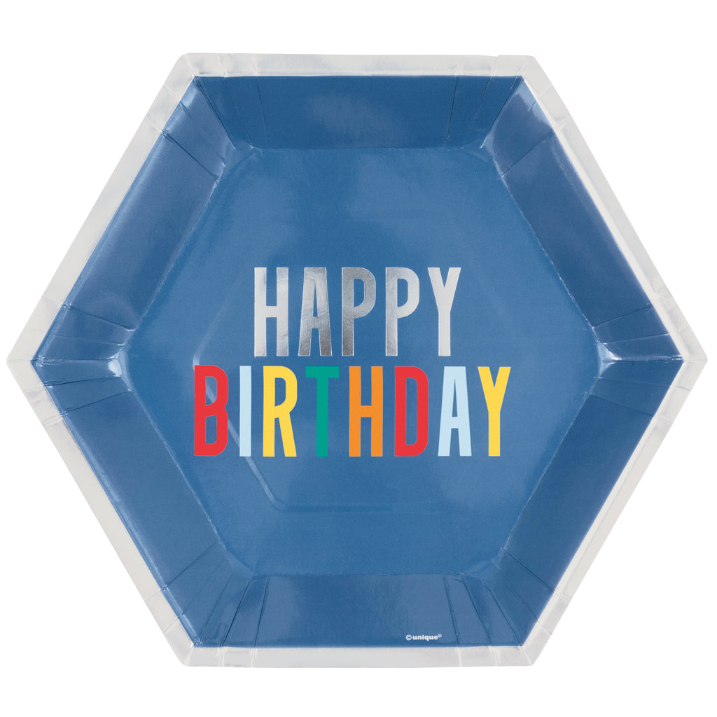 Happy Birthday Dots 8 Hexagon Shaped Paper Plates with Foil 9.25in