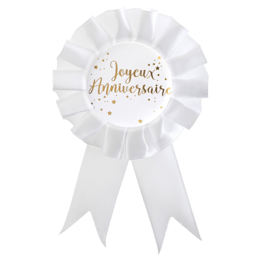 Joyeux Anniversaire Award Ribbon White and Gold 3.15x6in