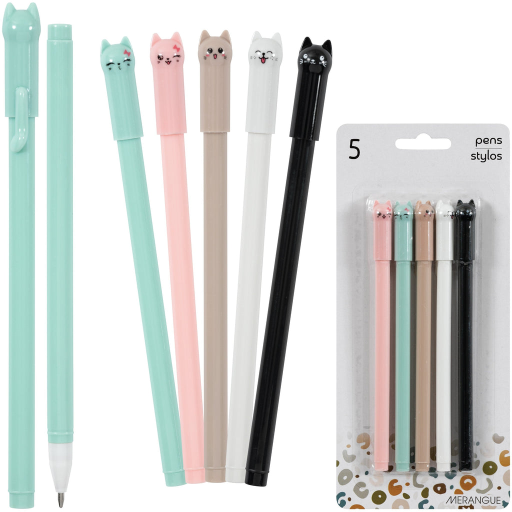 Merangue 5 Cat Expression Gel Pens - Black Ink 6in