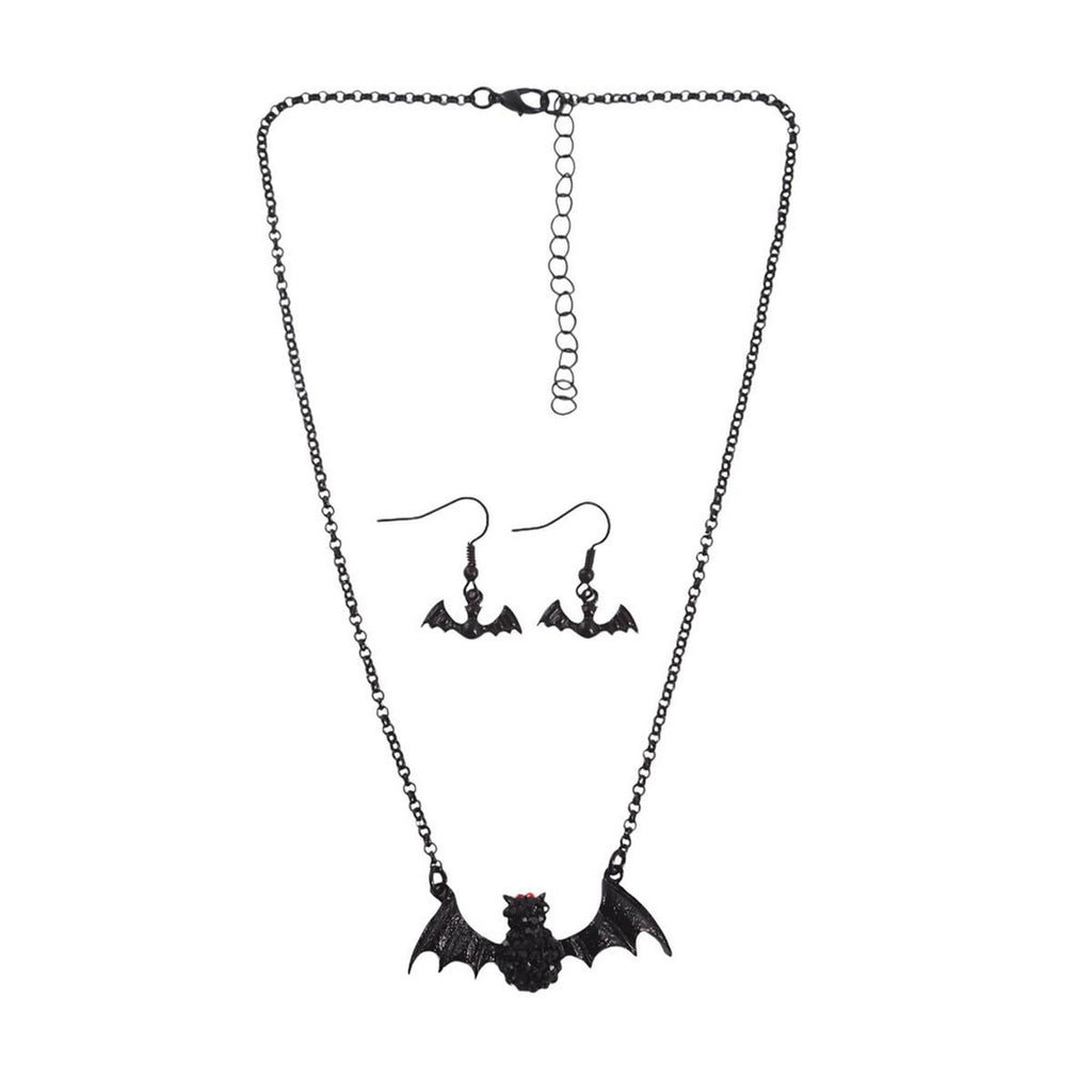 Party Gear Halloween Black Bat Earrings and Necklace Set