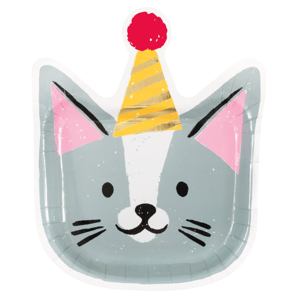 Paw Party 8 Cat Shaped Paper Plates with Foil 10in