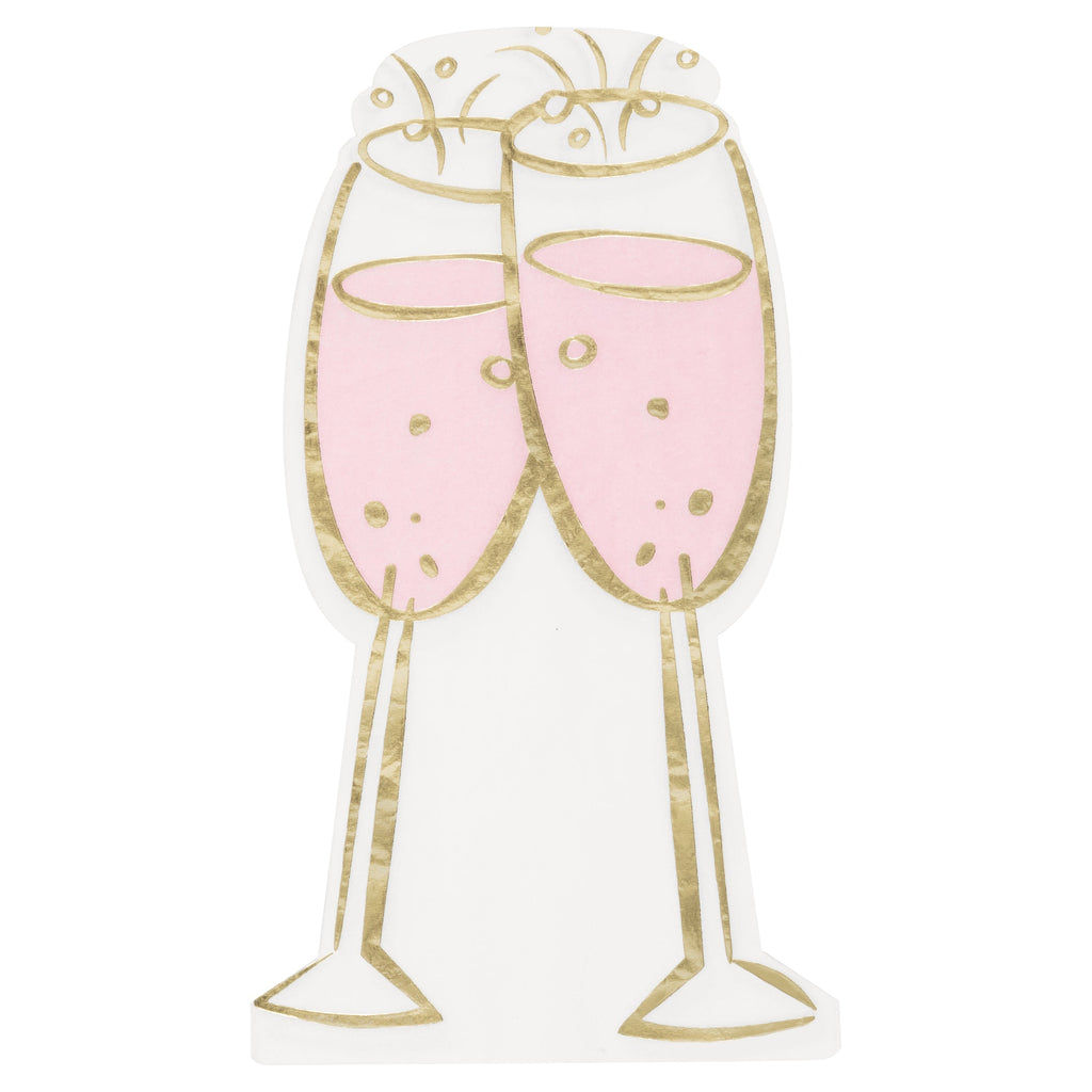 Pink Marble Bridal 16 Champagne Glass Shaped Guest Napkins with Foil 12.9x15.2in