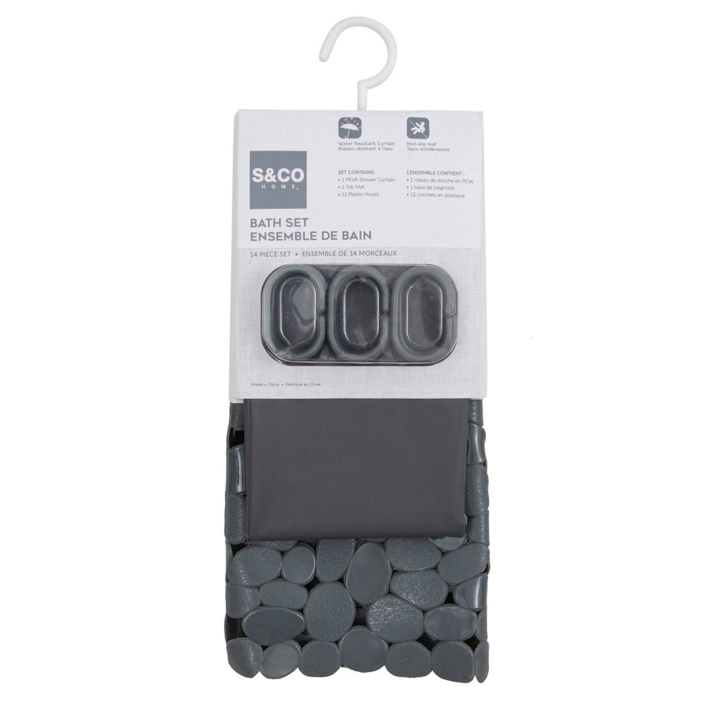 PVC Shower Curtain Bath Set 14pcs - Charcoal 71x71in