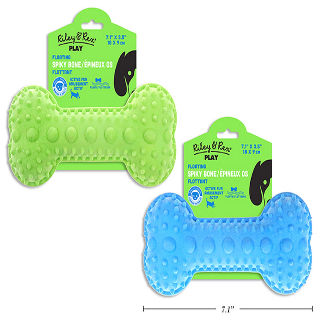 Riley & Rex Play Foam TPR Floating Spiky Bone Dog Toy 7.1x3.5in VRT