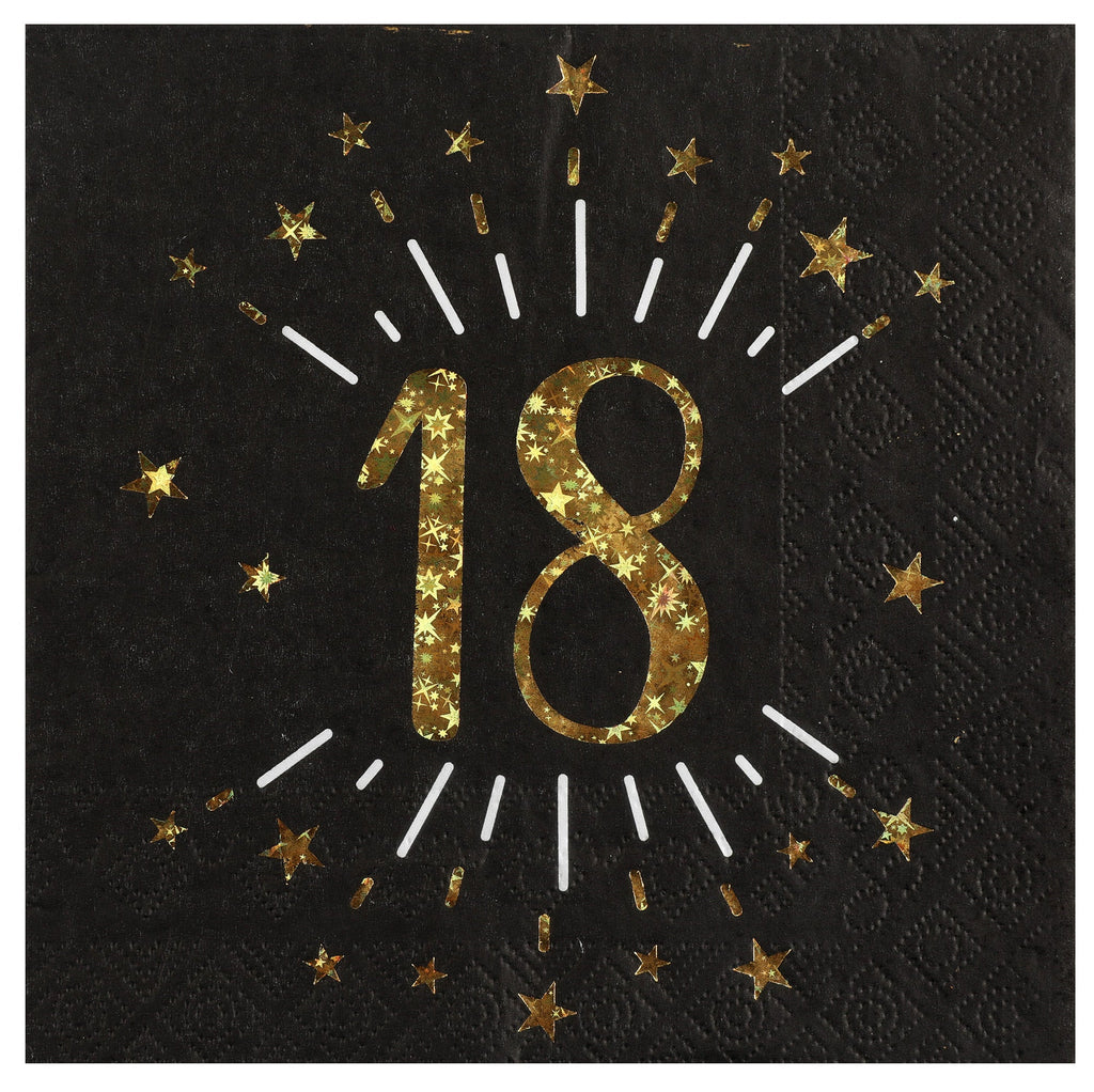 Sparkling Age 18 Luncheon Napkins Black and Gold 13x13in