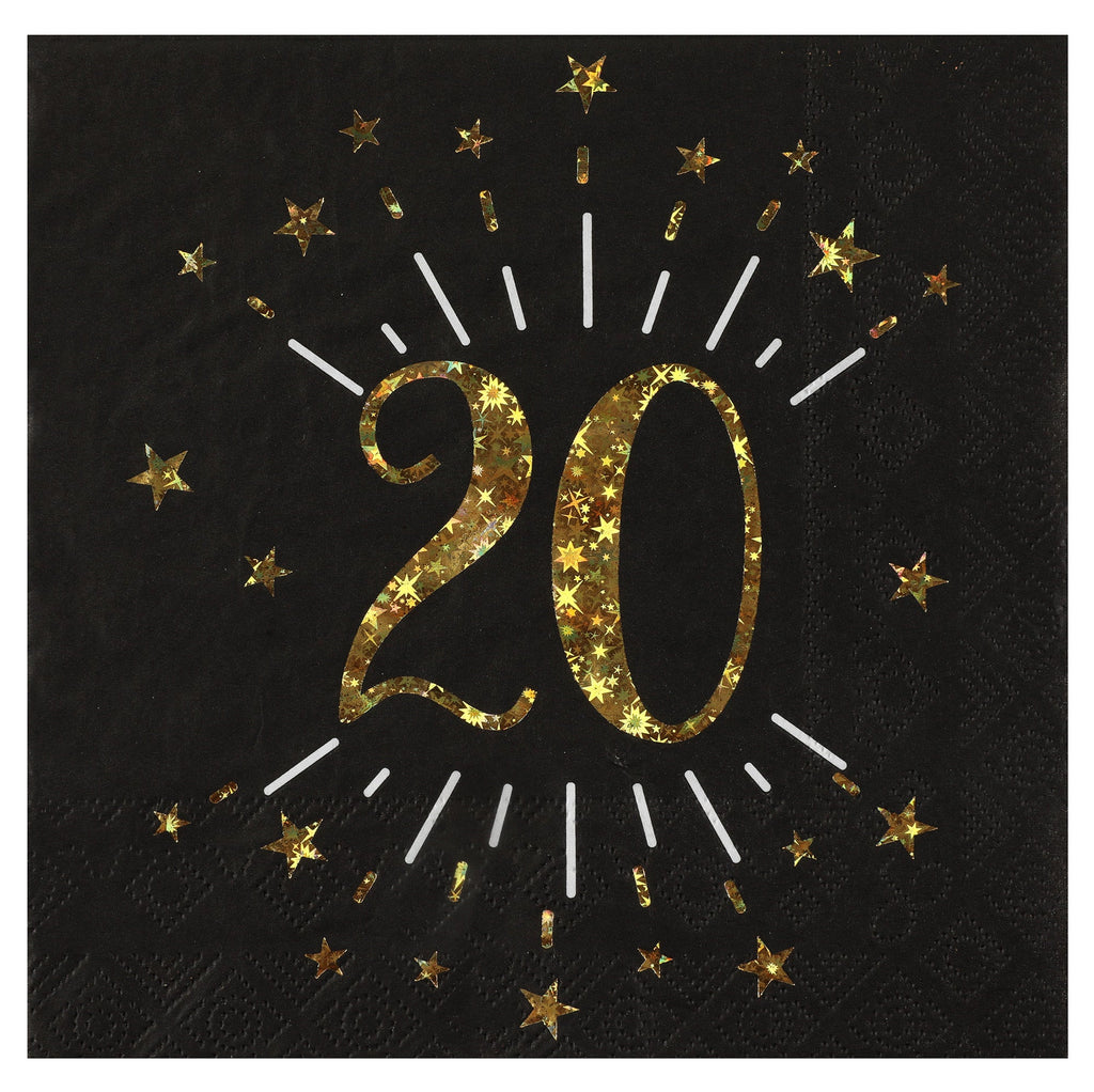 Sparkling Age 20 Luncheon Napkins Black and Gold 13x13in