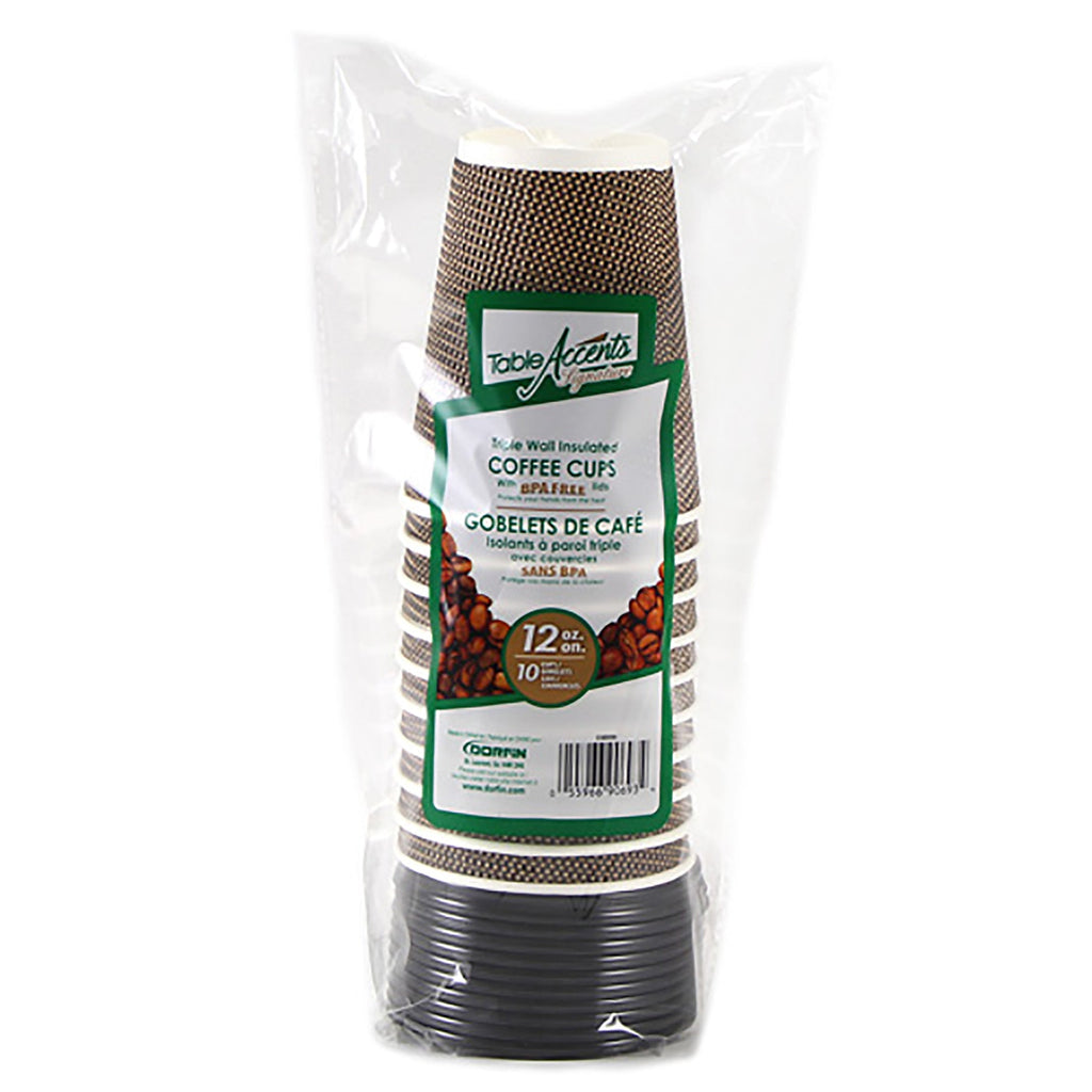 Table Accents 10 Coffee Cups with Plastic Lids Triple Wall Insulated 12oz