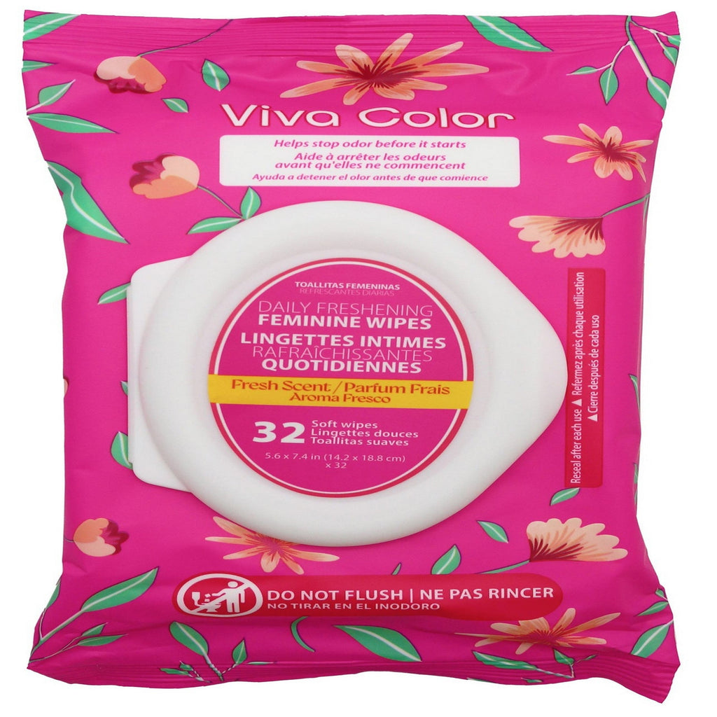 Viva Color 32 Fresh Scent Feminine Wipes 5.6x7.4in (14.2x18.8cm)