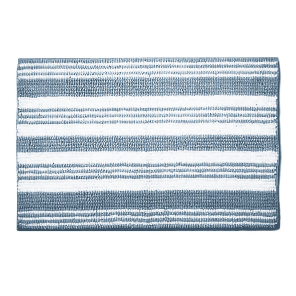 Woven Chenille Stripe Bath Mat 100% Polyester/Back 100% Rubber - Denim 18x30in
